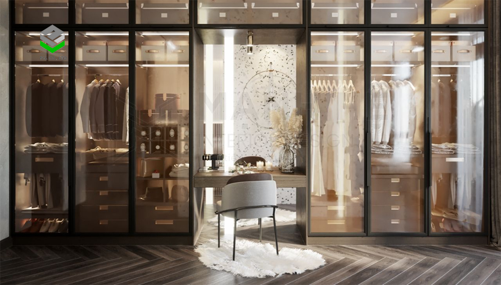 Kết hợp cùng hệ thống đèn LED hiện đại, cách chia tủ quần áo nhiều cánh, nhiều ngăn sẽ giúp cho gia chủ tôn lên giá trị đẳng cấp cho những chiếc túi xách, giày, phụ kiện, quần áo hàng hiệu...